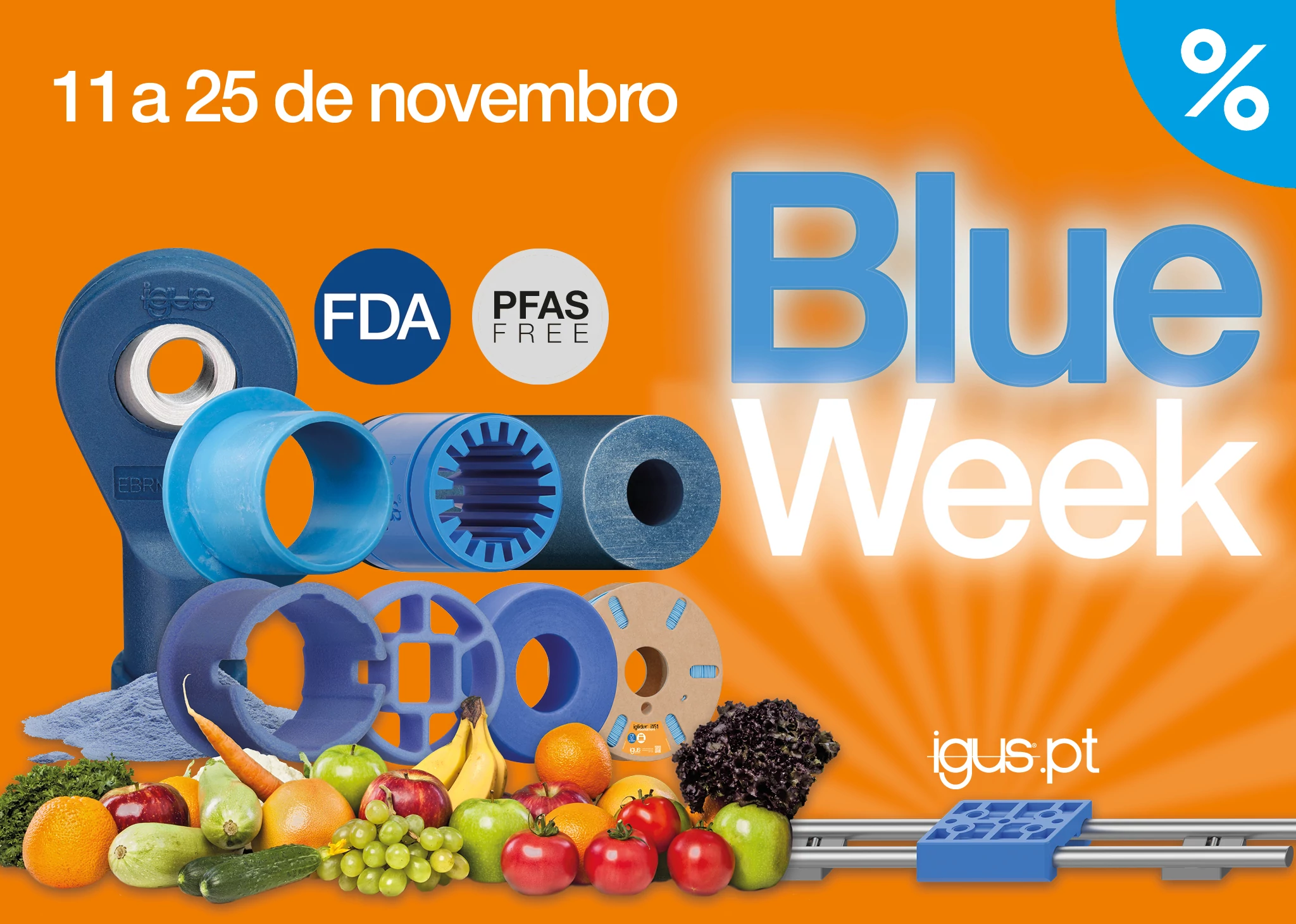 A igus Portugal acaba de anunciar a “Blue Week”, entre o dia 11 e 25 de novembro. Durante este período, clientes e futuros clientes da indústria alimentar terão acesso exclusivo a ofertas em produtos de várias gamas, incluindo casquilhos deslizantes em polímeros isentos de lubrificação, rodas dentadas, chumaceiras e calotas esféricas, calhas articuladas, entre outros.