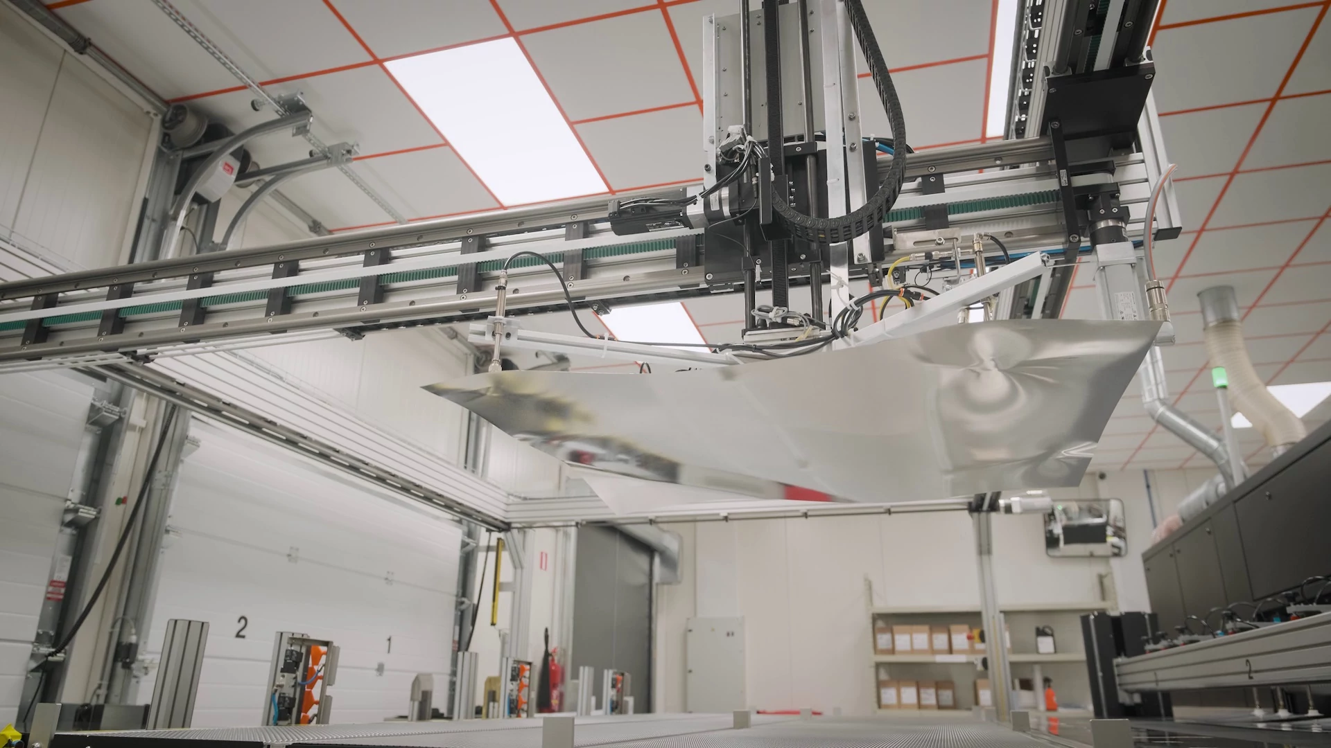 Com uma área de trabalho de 4.700 x 2.600 x 900 mm, o robô cartesiano multiaxial da igus em operação é o maior do seu gênero na Estónia. Parece uma impressora 3D gigante. É constituído por módulos lineares drylin e calhas articuladas isentas de lubrificação da série E2i, que asseguram um guiamento seguro dos cabos nos robôs. Caracterizam-se pela sua elevada duração de vida, pelo funcionamento particularmente silencioso e a facilidade de preenchimento e montagem. Um dos produtos utilizados aqui é a calha articulada E2i.15, uma calha articulada particularmente pequena e leve que é ideal para aplicações altamente dinâmicas e para os espaços de instalação mais reduzidos. Uma garra com quatro ventosas de vácuo recolhe as placas metálicas de uma palete e coloca-as sobre uma mesa no centro do robô cartesiano, com uma repetibilidade de +/-0,5 mm e uma capacidade de carga até 25 kg. São montados dois perfis de alumínio adicionais nos lados da mesa, nos quais se move outra travessa com três ventosas. As garras empurram os espaços para a área de alimentação da impressora, esta automação elimina a necessidade de trabalho manual repetitivo de alimentação e posicionamento.