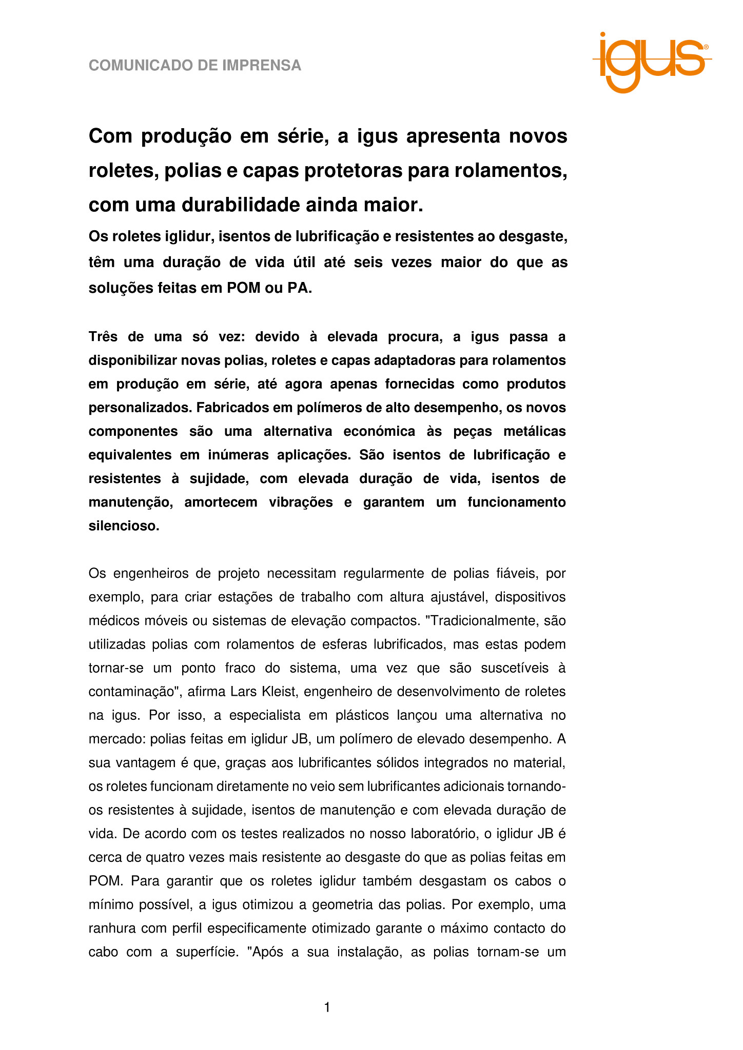Com produção em série, a igus apresenta novos roletes, polias e capas protetoras para rolamentos, com uma durabilidade ainda maior.