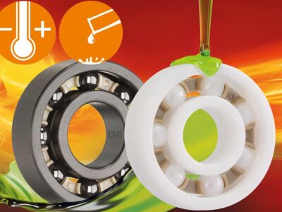 A igus desenvolveu dois novos rolamentos de esferas xiros resistentes a químicos e particularmente duráveis para utilização em contacto com produtos químicos. São 65 vezes mais resistentes ao desgaste do que os rolamentos de esferas feitos inteiramente de plástico polieteretercetona (PEEK). Esta durabilidade deve-se a uma combinação de anéis e esferas feitas em cerâmica técnica e um alojamento da igus em PEEK. Os projetistas das indústrias química e de processamento, aeroespacial e automóvel, entre outros, beneficiam da sua longa duração de vida.