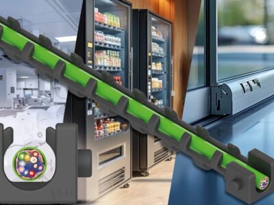 Quer seja em máquinas de venda alimentar, equipamentos laboratoriais ou portas automáticas: sempre que o espaço é reduzido, os projetistas dispensam muitas vezes guiamentos individuais para os cabos em movimento, arriscando-se assim, a danificar os cabos, elevando os custos de manutenção desnecessariamente. Uma nova calha articulada de uma só peça injetada e particularmente compacta, fabricada em plástico de elevada performance da igus, foi concebida para melhorar estes sistemas. Como esta solução está em fase de estudo, a empresa especializada em motion plastics, sediada em Colónia, está agora à procura de interessados que queiram utilizar os sistemas de calhas articuladas em projetos piloto e desenvolvê-los para a produção em série.