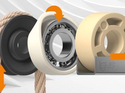 Três de uma só vez: devido à elevada procura, a igus passa a disponibilizar novas polias, roletes e capas adaptadoras para rolamentos em produção em série, até agora apenas fornecidas como produtos personalizados. Fabricados em polímeros de alto desempenho, os novos componentes são uma alternativa económica às peças metálicas equivalentes em inúmeras aplicações. São isentos de lubrificação e resistentes à sujidade, com elevada duração de vida, isentos de manutenção, amortecem vibrações e garantem um funcionamento silencioso.
